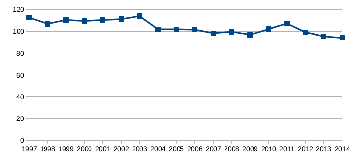 Tämä trendi ei oikein sovi vakuutusyhtiöiden joka vuosi esittämiin väittämiin korvausmenon tasaisesta kasvusta ja maksutulon riittämättömyydestä. Korvausmeno verrattuna vakuutusmaksutuloon on pikemminkin laskevassa trendissä ja siten aiheuttaisi vakuutusyhtiöiden logiikan mukaan paremminkin laskupainetta vakuutusmaksuhin.